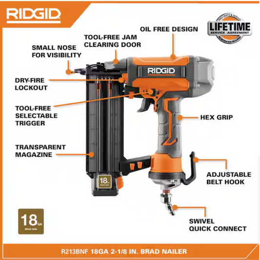 Air Powered Brad Nailer - 18 Gauge 2.125 Inch Straight